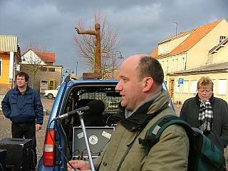 Der erste Friedensweg im neuen Jahr 2005 fand in Letzlingen statt. Auf dem Marktplatz des Heidedorfes hatten sich ca. 80 Heidefreunde bei stürmischem Wetter eingefunden.