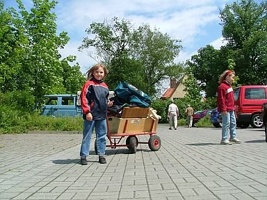 Auf den Weg zur Quelle begegnen den Kindern seltsame Tiere im Gebüsch und an den Bäumen. Weiße Gummimäuse sitzen an den Stämmen, Gummischlangen hängen an den Zweigen, ein spannender Weg. Am Ziel, einer kleinen flachen und breiteren Stelle der jungen Uchte können die Kinder spielen. Sie hören von der Wichtigkeit des sauberen Wassers, von den Gefahren die für das Wasser bestehen und entdecken im Spiel die Eigenschaften des Flusses, Fliesgeschwindigkeit, Wassertiefen, Flusseinengung und das dazugehörige Wechselspiel dieser Eigenschaften. Zur Freude der Kinder schwimmen die Schiffe, werden getrieben durch das fliesende Wasser. Die vorgefertigten Schiffe erhalten durch die Kinder Veränderungen, das Schiffsdeck bevölkern Gummischlangen, Ungeheuer auf großer Fahrt, an den Holzmasten blähen sich grüne Blattsegel, es herrscht ein großes Leben am und im Fluss. Ein schöner Nachmittag für alle, für kleine und große Kinder.