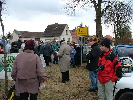 Der 152. Friedensweg für eine zivile Nutzung der Colbitz-Letzlinger Heide führte an die Westseite des Heidelandes nach Born. Am Ortseingangsschild der Gemeinde Born hatten sich die Teilnehmer zur Kundgebung versammelt. Ein kalter Wind wehte über den Versammlungsplatz, auf der Bundesstraße die Realität des Truppenübungsplatzes, Fahrzeugkolonnen der französischen Armee. Auf der Zufahrtsstraße Born: Polizei, Bundeswehr, Feldjäger und privater Sicherheitsdienst. Am Mikrofon Wulf Gallert von der PDS/Die Linke. Er sprach von der Angst der Menschen vor einem Krieg, von der Gefährdung des Friedens und warnte vor der Eskalationsspirale im Atomkonflikt Iran. Immer noch wird zur Bewältigung von Konflikten die Androhung und Durchführung von Gewalt als einzige Lösung angesehen. Deshalb wird auch in der Colbitz-Letzlinger Heide für den weltweiten Einsatz geübt. Dass es andere, friedliche Wege gibt spielt in den Machtspielen um Rohstoffe und Absatzmärkte keine Rolle. Erika Drees von der BI OFFENe HEIDe rief zur Umtauschaktion -Spielzeug gegen Kriegsspielzeug- auf, Konfliktbewältig-ung beginnt im Kinderzimmer. Ein weiteres wichtiges Thema der Kundgebung war die Vorbereitung des Ostermarsches 2006. Der Ostermarsch findet am 16. April in Colbitz statt, er ist gleichzeitig der 153. Friedensweg. Beginn des Ostermarsches 11:00 Uhr am Panzerdenkmal. Das Denkmal liegt an der Verbindungsstraße zwischen der B71 (nördlich von Haldensleben, Einfahrt zur Gemeinde Hütten) und der B 189 nördlich der Ortschaft Colbitz. Der Friedensweg führt dann über die genannte Verbindungsstraße nach Colbitz zur Kirche. Vor der Pauluskirche dann ein " Markt der Möglichkeiten", um 14:00 Uhr der ökumenischer Gottesdienst und anschließend die Kundgebung zum Ostermarsch unter dem Motto "Bleibe im Land und wehre Dich täglich".