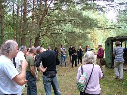 Die Wanderung ging durch den herbstlichen Wald zu einer der wenigen Wasserstellen in der Heide. Am Rande des Übungsplatzes liegt versteckt die größere offene Wasserstelle mit dem Namen Dolken. Eine Erklärung für diesen Namen gibt es zurzeit noch nicht. Hier wurde im Wald mit Kaffee und Kuchen der einfache Frieden praktiziert. Herr Schröter aus Stendal berichtete während der Kaffeepause von seiner Reise nach Kuba.