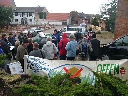 - Neuenhofe, 02.03.2008, 14:00 UhrDas Sturmtief "Emma" brauste noch über das Land, als sich in Neuenhofe die Teilnehmer des 176. Friedensweges trafen. Am Mikrophon war das Hauptthema der Ostermarsch 08 am 24.03. in Haldensleben. In der ehemaligen Kreisstadt findet der diesjährige Ostermarsch unter dem Motto "Eine friedliche Welt ist machbar!" Die ersten Informationen wurden gegeben:
