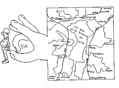 Auf dem 83. Friedensweg führt die Route gleich an zwei Standorten ehemaliger Förstereien vorüber. In der Nähe des Ausgangspunktes befand sich bis in die 50-er Jahre unseres Jahrhunderts die Försterei Landsberg. Reste der Mauern vom Forsthaus, vom Brunnen und von den Forstarbeiterhäusern sind noch heute dort zu erkennen. Beim 43. Friedensweg im Februar 1997 wurden diese Objekte und der Gedenkstein Lüderitz bereits besichtigt. Wer Interesse hat, kann sich vor dem Friedensweg oder danach noch einmal umsehen.